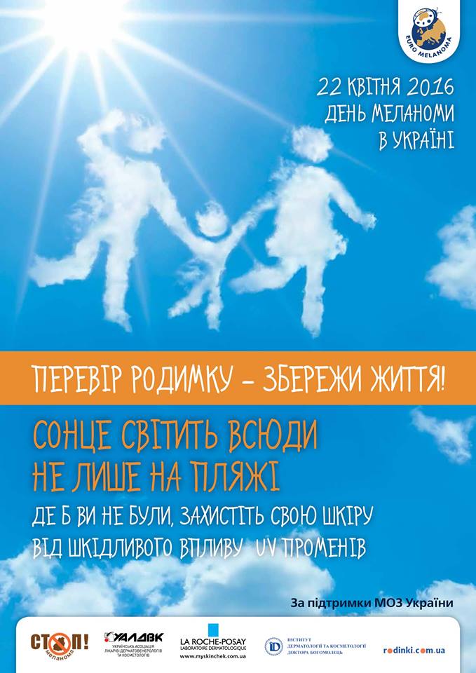 22 апреля 2016 года в Украине состоится восьмой Всеукраинский День диагностики меланомы в рамках панъевропейской программы «Евромеланома». Программа «Евромеланома», участниками которой являются более 20 европейских стран, была создана в 1996 году с целью объединения мирового сообщества для борьбы со смертностью от меланомы путем информирования общества об опасности родинок, которые перерождаются, и побуждения медицинских работников к бесплатным осмотрам населения с целью выявления меланомы на ранних стадиях, что позволит значительно сократить высокий уровень смертности от этого серьезного заболевания.